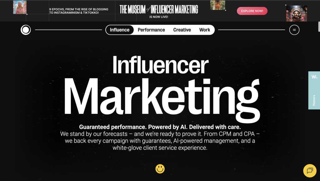 - Strengths: Global campaigns, access to A-list creators, and experience with Fortune 500 clients.